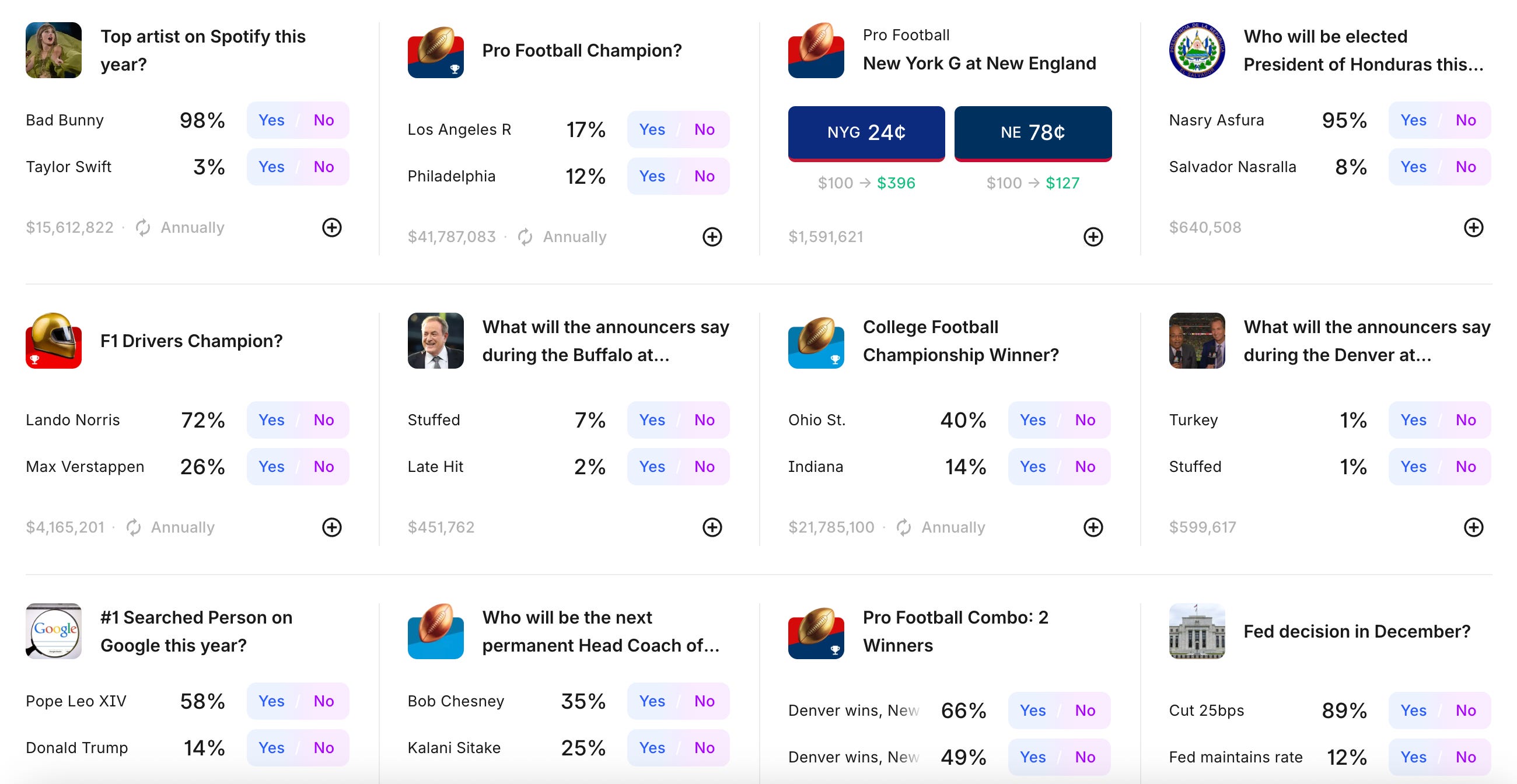 Now, in 2025, those markets make up nearly 80% of all money traded on the platform.